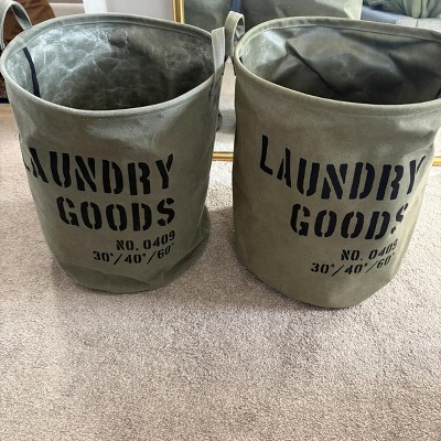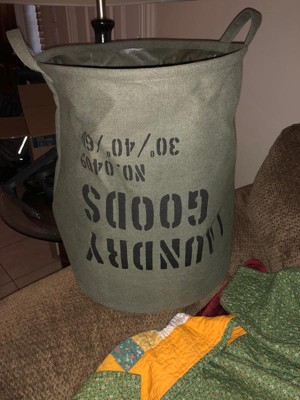 Danya B. Army Canvas Laundry Bucket Dusty Olive: Collapsible Hamper with Built-In Handles, Portable & Multipurpose