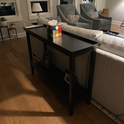 I’ve decided to start writing product reviews because I rely on them so much when shopping online. This is an amazing sofa table! It was packed expertly so there was no damage whatsoever. It was simple to put together, sturdy, and beautiful! My only slightly negative comment is that it’s tall; taller than the back of my sofa but not taller than my sofa cushions. I would highly recommend this table. I was happily surprised by the quality at a very affordable price.