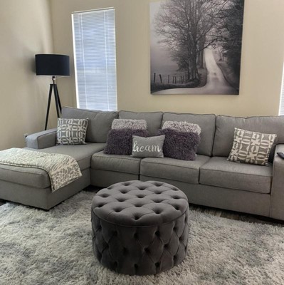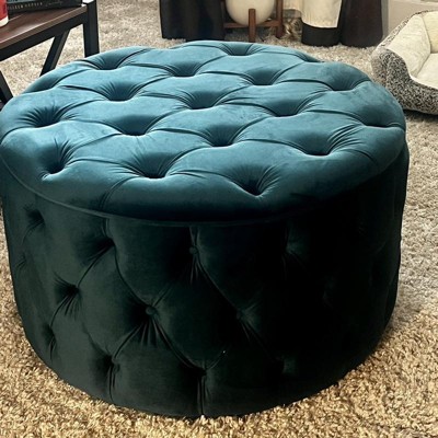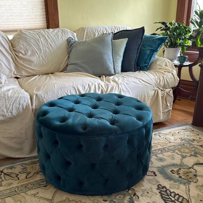 I have been eyeing this ottoman for a year and finally decided to purchase it. The teal goes with my color scheme and is a nice round size I just wish would have a storage compartment.