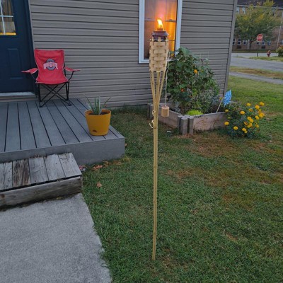 [This review was collected as part of a promotion.] Want to add some jazz to your bake yard patio and help keep bugs away as well then look no further these lays bamboo tiki torches are the way to go . These torches are made really well and out of study material . Very easy to use just open them up Put your torch fuel in it then turn them upside down to wet the wick so it don't burn up and light them. They go right into the ground just get a good secure grip on it and put into dirt and your real to enjoy your evening I highly recommend this product