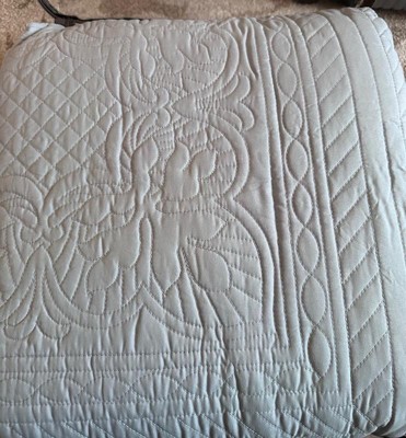 [This review was collected as part of a promotion.] I received the Madison Park Tuscany Coverlet Mini Set, King/Cal King, in Seafoam green. I really like this set. Its very comfortable and lightweight, which is perfect for the summer months. Out of the box it is a little stiff, but after washing more the material does soften up. So far the material is holding up. It fits my california king bed perfect and has extra length/width, so I'm not fighting over the blanket with my husband all night. I wasn't sure about the color at first, but it has grown on me. It just gives me an excuse to buy new matching bedsheets. My cats love it as well. All in all i do recommend this set.