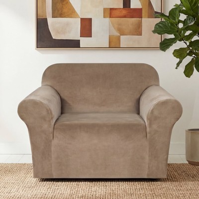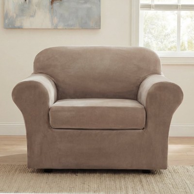 Ultimate Stretch Chair Suede Slipcover Luggage Brown - Sure Fit: Adjustable, Elastic Fit, Indoor Furniture Protector