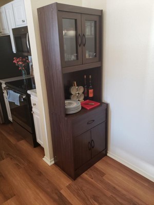 Very nice cabinet and perfect for my kitchen, but it had too many pieces to put together, so was very time consuming; the instructions were not clear and some wrong, not all the holes were pre-drilled.