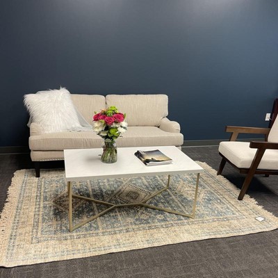 Maxwell Two-Tone Modern Glam Coffee Table White Faux Marble/Gold - Saracina Home: Y-Leg Design, Easy Assembly