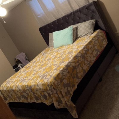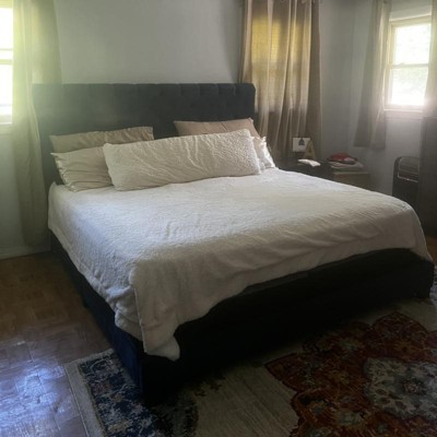 Gorgeous headboard and super nice. Frame is junk with plastic legs. I wouldn’t buy it again. Less than 2 years old with normal use by normal sized adults and I’m throwing out everything but the headboard because the plastic legs literally folded under the bed