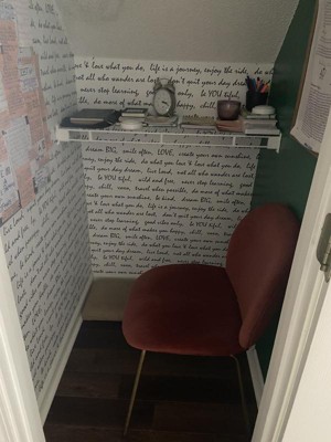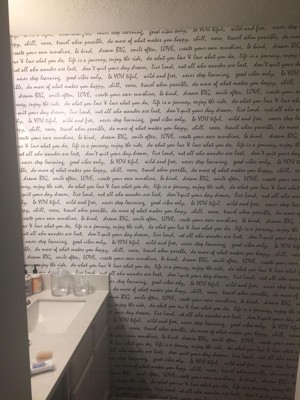 This is just a expensive wall version of contact paper which wasn't even consistent in texture. Roll was thicker than the other so it made a difference on the dark wall that I put it on showing some rolls brighter than the others. The text started with the same in every role so I could never complete a sentence to line it up correctly. One of the words on the paper is possibility which was not complete on any of the rolls I had. I added a picture to show that they all started with the same word.