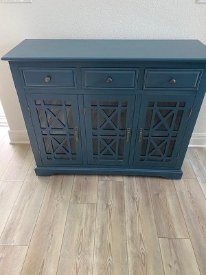 Stylecraft Archer Ridge Sideboard Dark Blue: Nautical Coastal Beach Style, Glass Doors, Fixed Shelves, No Assembly Required
