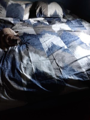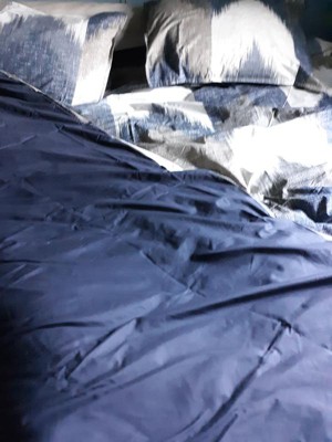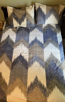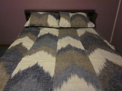 [This review was collected as part of a promotion.] I have and been using these Alpine three-piece duvet cover mini set full / Queen in Navy. I love it because this has such a really cute modern sophistication and style with just this ink and Ivy Alpine look. And I love how it is breathable, durable and machine washable. What I also love about it it has the hidden bar tracking so you could secure this comforter you know from it shifting which is great. And I love how the buttons they're clear and a decent size. I love how the feeling is hypoallergenic and polyester. I love how the patterns on it there like broken chevron pattern in navy, Dusty blue, charcoal and taupe and it's on an ivory background and the reverse side is a Dusty Navy solid blue. Sorry I love how you can change your look with just a flip over on the duvet. I love how it's very easy to clean and to put back on. I love how it has an antibacterial treatment that keeps and provides a built-in freshness protection on the duvet. I also love how it reduces the growth of odor that can cause bacteria so this way you can keep the fabric longer. The fabric name is percale, fabric weight is lightweight it comes with two standard shams. And I just love how it just gives it just this overall clean crisp look and it feels really nice. I had a friend of mine come over and she checked it out and she loved it she loved the look the quality the design the value the texture and she went out and got a few herself. I thank you for this amazing opportunity. #tryit