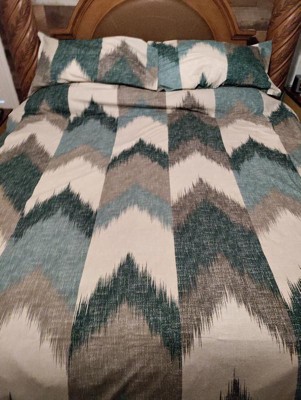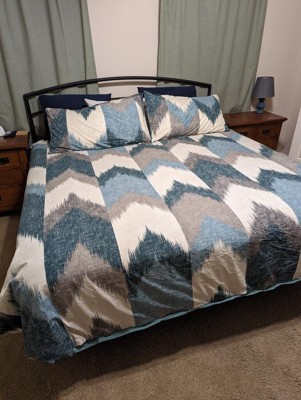 3pc King/California King Alpine Cotton Duvet Cover Mini Set Aqua: Ink+Ivy, Reversible Chevron Pattern, OEKO-TEX Certified