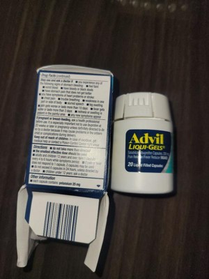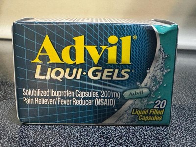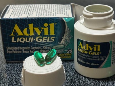 - 20 Advil Liqui-Gels minis Pain Reliever and Fever Reducer liquid filled capsules, ibuprofen 200 mg