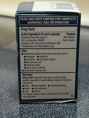Fast Pain Medicine in a mini Capsule. Advil Liqui-Gels minis provide the concentrated power of Advil in a 33% smaller capsule. Easier to swallow without compromising their effectiveness, these liquid-filled capsules get to work in only minutes for powerful relief of headaches, backaches, muscle aches, toothaches, menstrual pain, minor arthritis and other joint pain, and aches and pains of the common cold. These Advil minis fight pain with the same strength as regular size Advil Liqui-Gels. This pain reliever and adult fever reducer is designed for fast absorption, providing hours of pain relief. Each mini capsule contains ibuprofen 200 mg, a non-steroidal anti-inflammatory drug (NSAID) that is already dissolved, for headache, backache, menstrual pain relief, joint pain relief and minor arthritis pain relievers. Get ready to head back to college with confidence and stock up ensuring you're ready for anything the academic year throws your way. By 2022, Advil will feature more sustainable packaging made with 20% less plastic per bottle, to keep nearly 500,000 pounds of plastic out of landfills. Fast pain relief just got mighty small. That's the power of Advil Liqui-Gels minis.