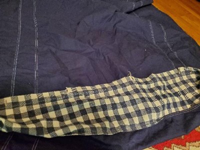 This is a really nice duvet cover. It fit my twin down comforter perfectly. The cover feels well made. There are 4 ties at each corner to tie down your comforter inside. The checkered side is a flannel-like material and soft. The other side felt like a khaki material which feels durable and thick. There's a lot of lint on the flannel-like side but I'm sure after a few washes it'll be fine. I've only washed it once. The color is great. The sham is nice too. I hope to find some matching sheets and pillow cases!