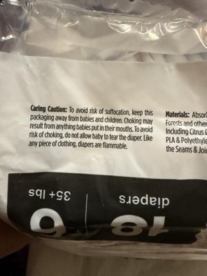 Caution: To avoid risk of suffocation, keep this packaging away from babies and children. Choking may result from anything babies put in their mouths. To avoid risk of choking, do not allow baby to tear the diaper. Like any piece of clothing, diapers are flammable.
