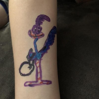 I purchased these for my daughter as a christmas present. She is always drawing all over her arms with pen. I thought this seemed like a safer option. She loved them and uses them quite often. Her artwork is not instantly removed with water but it comes off faster than ink.