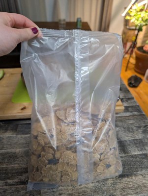 Less then half was filled with cereal and I get the fact that it needs air in the bag so it doesn't break but more then half come on