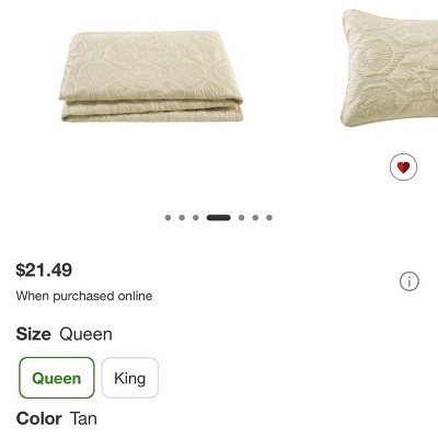 3pc Queen Shore Quilt Set Tan - VCNY HOME: Coastal Bedspread, Microfiber Coverlet Set with Embroidered Details