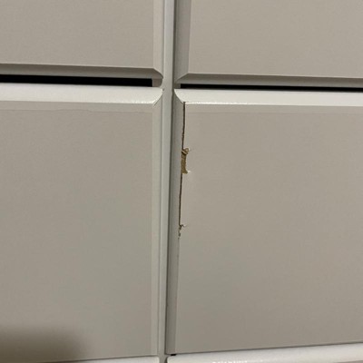 The first dresser we received was labeled white but was espresso. The second we received was put together exactly as instructed (not difficult) but there are gaps between the drawers and they are uneven. Thankfully Target has amazing customer service, but I’m still really disappointed in this piece!