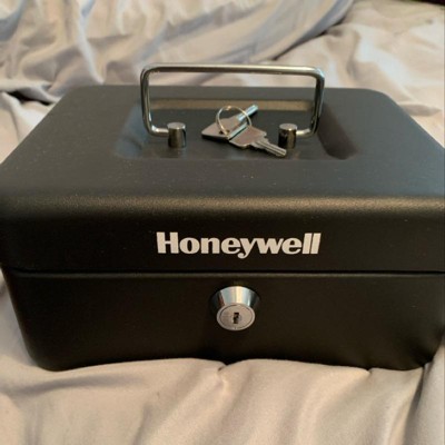 First Alert Cash Box: Steel Security Safe, Black Key Lockbox with Removable Tray, Money Safe for Cash & Valuables