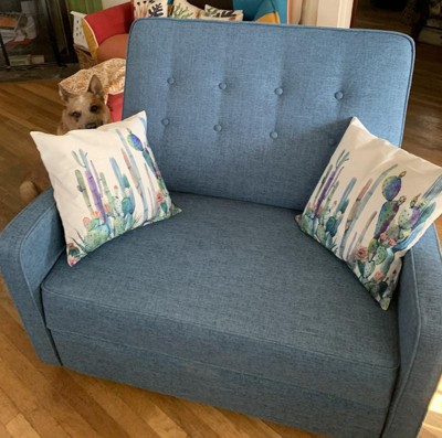 I have owned this chair for 10 months. It was so easy to assemble out of the box, and it is so super cute. However. The fabric is already pilling, and one of the buttons on the back is hanging precariously by a thread. And the chair isn’t even used daily. So while I still love the look of the chair, I think for this amount of money you could find something that’s higher quality.
