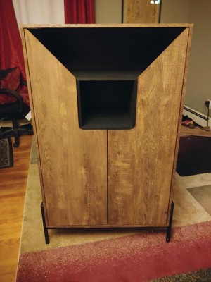 Ikea like price but higher quality and better design. Would prefer Room & Board solid wood furniture but would cost ten times more. Perfect for entry cabinet that offers organization for shoes and miscellaneous items like hat, umbrella, socks, keys, etc. Still has some smell that needs air out but was expected of the composite wood. No knob which is hard for a child (who's not tall enough to reach the triangle part of the door) to open. Happy with the purchase.