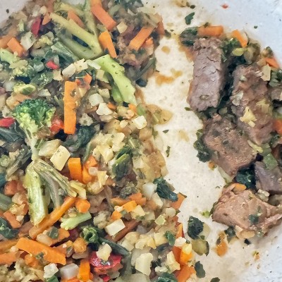Another great combination of ingredients. A slightly sweet teriyaki with the perfect amount of spice mixed with tender beef chunks and a great combination of vegetables. Winner!