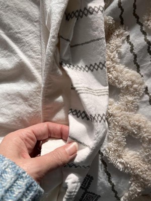 Ink+Ivy 3pc Full/Queen Imani Cotton Printed Duvet Cover Set with Chenille Ivory: Geometric Pattern, Lightweight Fabric, OEKO-TEX Certified