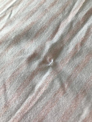 This is a cute bedspread,, but be prepared for wrinkles when unpacking. I washed it on gentle and dry on low heat but was still wrinkled, so I ended up ironing it on a low setting and they came out well. Other than the wrinkles haven't had any issue seems to be made well. Originally I purchased the Amazon version which was cotton, & $200 for the spread alone.... I loved the material, but the ticking on it was grey and I wanted the neutral stripes,,, these stripes aren't as detailed but they're the color I want so that's why I chose the target one. The drop on the sides could be a little longer for the puddling but my mattress topper makes my bed a bit higher, so it almost hits the floor Overall pleased with it The price is fair too.
