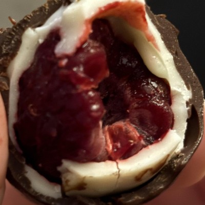 I had tried the strawberry version and liked that but the raspberries might be my new favorite. Both are fresh and tasty. Some are glued together from the chocolate though.