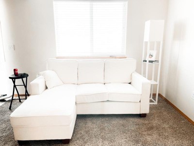Perfect couch for apartment living. We needed this for our apartment before we move into our house, it came in 3 boxes and was easy to set up without tools. The color is perfect and easy to clean. Super comfy and aesthetically pleasing.