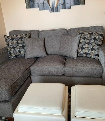 I am loving my new sectional couch. My apartment isn’t big so this is perfect! It is firm but just the way I like! Highly recommended!!