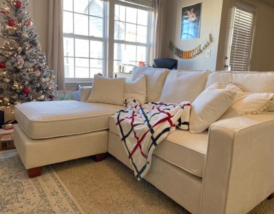 OSP Home Furnishings Russell Sectional with 2 Pillows Off White: Transitional Style, Polyester Upholstery, Wood Frame