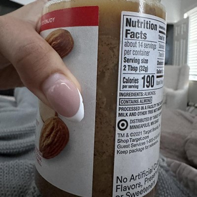 I love this almond butter for its simplicity. Zero added salt, sugar or oils. Takes a little work to stir, but do that as soon as you open it before refrigeration. I am disappointed Target seemed to get rid of the larged 28oz size.