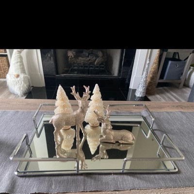 this is the BEST MIRRORED TRAY!! it's a lot bigger in person than I thought, it is sturdy and has weight to it and the chrome finish is nice. Looks great on my coffee table, will be buying more.