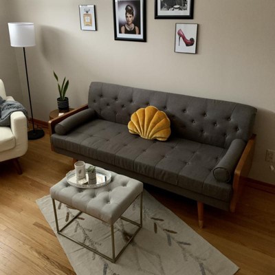 As others have said, it’s not the most comfortable couch, but it is perfect for my spare bedroom/den. It won’t be used as an everyday sofa, but I don’t think it’s intended as such. For the price, it’s very solid. We’ll see how it wears over time. Perfect for MCM. Paired it with my tufted ottoman, also from Target. My dad assembled it himself, but since Fedex just left it on the porch, he had to carry the pieces in one by one because it was rather heavy.