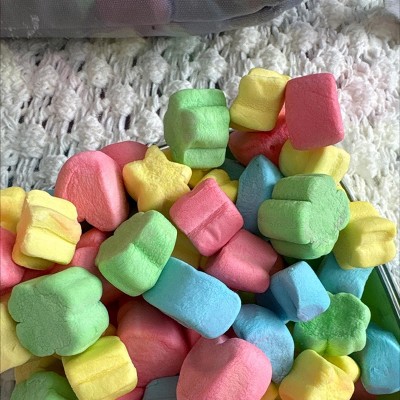 I was expecting to get the kind of marshmallows. They’re in Lucky charms. The hard crispy kind. The dried ones. Instead, these are puffy marshmallows with food coloring, and they don’t have any particular flavor. Very disappointed.