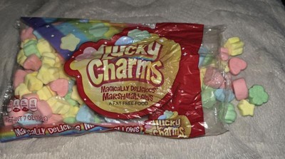 Don't be fooled- it says lucky charms so thought a bag of marshmallows of what the cereal has. They are just cute shaped and multi colored normal marshmallows. The kids enjoy them. I feel deceived and let down- but my bad.