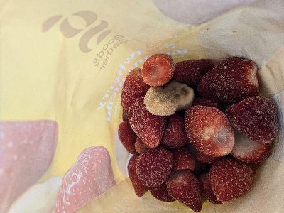 most people here said they got mostly strawberries. i got mostly bananas, which i appreciate because i LOVE frozen banana!! i didn’t experience any weird tastes or brown bananas. the fruit i got is super yummy!! the one thing i’d do differently is put in strawberry halves instead of whole ones. it would make them easier to eat (i’m aware most people probably don’t eat frozen fruit plain, but i would suggest trying it!! it’s like candy!!). i don’t really have any complaints, but i hope my opinion stays that way next time i get a bag. very big bag for a good price!!