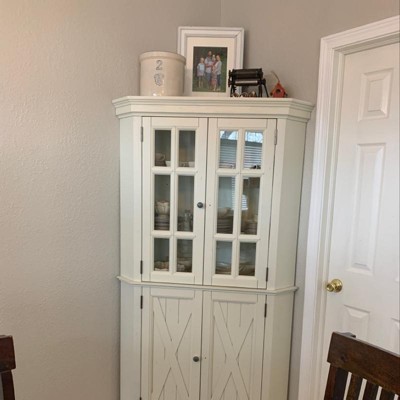 There's always space to store and display your favorite items with this Homestyles Seaside Lodge Corner China Cabinet. Choose from glass cabinet doors that showcase your valuables or wood doors that conceal the storage, but with plenty of storage space this will help you organize any room. The durable construction will ensure that this piece remains a showcase in your home for years.