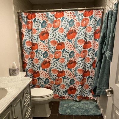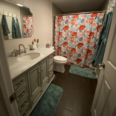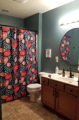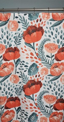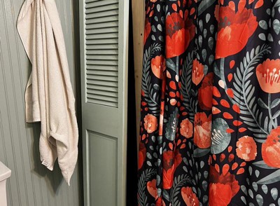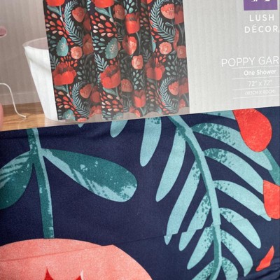Lush Décor Poppy Garden Shower Curtain Navy/Red : Microfiber, Machine Washable, Non-Slip Backing