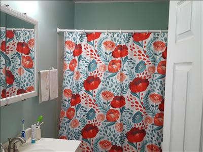 Such a beautiful and well-made curtain! Easy way to add some fun and color to a bathroom, makes my bathroom feel brighter and more pleasant to be in. Ironed easily and is just a really nice curtain!