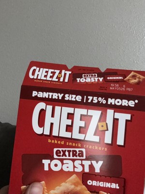 Love it when the extra toasty cheez-its are extra toasty. Lately, too many boxes aren't extra toasty and seem just like a regular box of cheez-its. Stop listening to the complainers who say they taste burnt - they should buy regular cheez-it!