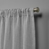 The Nicole Miller Belfry sheer panels offer a solid linen look that diffuses light beautifully. The lightweight construction brings an airy feel to your room and allows soft light in for a glowing effect while keeping heavy sun glares out. These panels will drape beautifully from your favorite curtain rod by a 3" sewn-in rod pocket. Nicole Miller provides a design vision that is unparalleled and offers a modern aesthetic, with plays on sophistication, prints, and fabrics. Use the Belfry window curtain panels as the perfect finishing touch for any living room, dining room, bedroom, bathroom, and home office. The result is a blend of uptown and downtown styles that offer timeless designs and eclectic, modern sensibility.