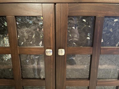 I ordered this cabinet with some trepidation because RTA furniture is not something I generally think is worth the money, but I saw that it was solid wood so I decided to go for it. The assembly instructions were about average, bonus points for being extremely well packed and arriving in almost perfect condition. Every part was clearly labeled and instructions were detailed enough that assembly was pretty simple. The holes in the back of both drawer fronts were clogged with something (probably excess stain/laquer) that I had to manually chip out, and causing the cam lock pins to be difficult to install straight, but I’m pretty handy and that was the only challenge I had with assembly. I like that the back is scewed on rather than nailed in like some pieces. The resulting cabinet is lightweight and the wood is easy to dent, but overall since it’s actually real wood I consider it a good value. The style of the piece certainly makes it look more expensive than it is. I added some film to the inside of the glass to hide the contents from view. 4.5/5 stars isn’t an option so I give this 5. It’s really a very nice piece for the price.