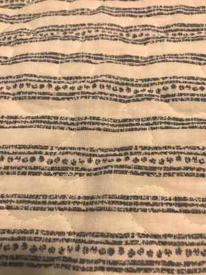 [This review was collected as part of a promotion.] I am in love with this beautiful quilt set. This is exactly what our bedroom needed to brighten up the space and make us feel like we are living in luxury. I love the feel of the material. It was prewashed to soften and it has a very soft, luxurious feel. I am also in love with this design. I like that there is also a design on the backside so when you fold it down, the stripes are a nice contrast -- gives it a slightly different look if you prefer. Blue is also my favorite color and the blue in this set is so aesthetically pleasing. It fits our bed perfectly, too.