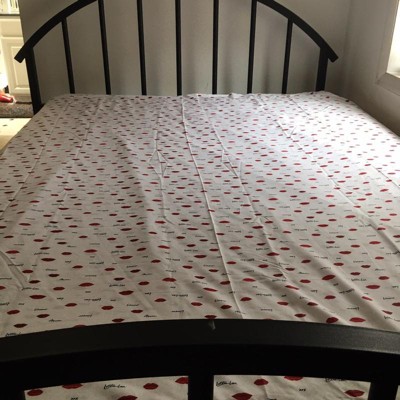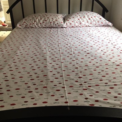 The black and khaki stripe with red heart “sheets” are made with a horrible, thin, synthetic material that feels more like cellophane than fabric. The “white” stripes are a super dirty looking beige/gray. This is the worst purchase I have ever made for bedding. The only way these would be acceptable is if they cost $5 and you put them on a guest bed to discourage guests from overstaying.