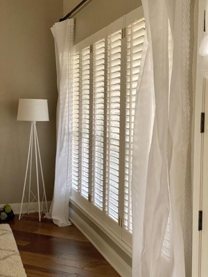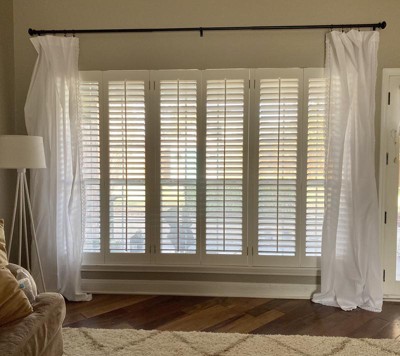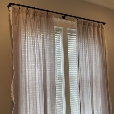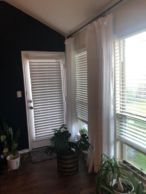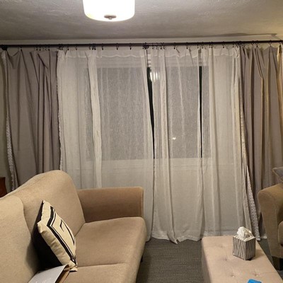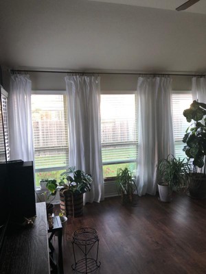 Finally found an affordable linen curtain in a longer length (108)! Love the airy look it brings to my family room. It lets in just the right amount of light with also giving privacy at night.