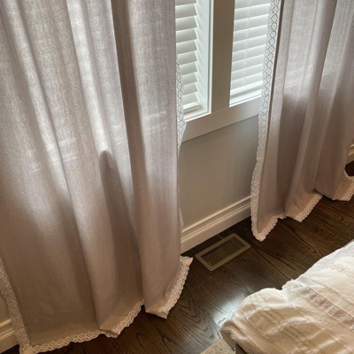 Create a dreamy ambiance in your home with the Lush Decor Rosalie Window Panel Set. It's an elegant addition that complements various interior styles, including vintage-flair, cottage core, minimalist, and farmhouse. These light filtering curtain panels are designed to add a touch of charming sophistication to your bedroom, living room, or dining room, making them the ideal choice for those seeking both style and functionality in their window treatments. Crafted with meticulous attention to detail, these curtain panels are made from a high-quality linen-textured cotton fabric blend that exudes elegance. The delicate lace edge border adds a unique and feminine touch, elevating the overall aesthetic of your living space. The result is a set of curtains that not only filter out light but also adds a touch of timeless style to any room. The linen-like cotton blend fabric is composed of 52% Polyester, 37% Cotton, 8% Viscose, and 3% Nylon, ensuring a luxurious feel. Additionally, these drapes offer seamless installation with its 3" rod pocket, allowing you to easily slide it onto your curtain rod, or by using clip rings (not included). These curtains are not just window coverings; they are a statement piece that enhances the overall aesthetics of your living space. The romantic ambiance they create is perfect for intimate evenings in, making your home a haven of comfort and style. Upgrade your decor with these charming curtains and transform your home into a place of timeless elegance. These curtains are machine washable ensuring that they maintain their pristine beauty over time, making them a lasting and cherished addition to your home. Please refer to label for full care instructions.