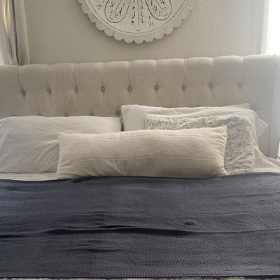 [This review was collected as part of a promotion.] This is a gorgeous knitted blanket. Not too heavy and perfect for a queen size bed. It’s a great addition to any decor since it’s a neutral color. I’m in love with the softness and gives a cozy vibe.
