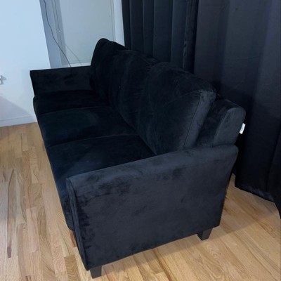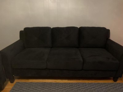 Pros: very soft and very dark in color, very easy to put together Cons: incredibly tiny couches, very narrow seats, super rickety when you sit on it. This couch would be perfect if you are purchasing it for only children to use, or to be mainly looked at or rarely used, or if maybe your living space is SO tiny that this is your only option. I returned these the very next day.