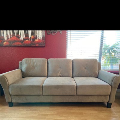 Lifestyle Solutions Harper Tufted Microfiber Sofa Brown: Upholstered, High-Density Foam, Hardwood Frame